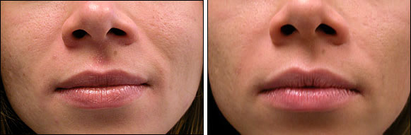 26 year old before and 2 months after 1cc of Radiance to the upper lip. Notice the tremendous difference!